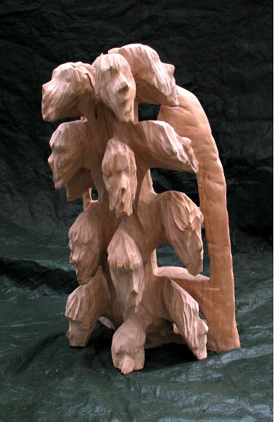 "Kärttyisät miehet" 2009 (lehmus) Koko: 60cm x 38cm x 90cm
